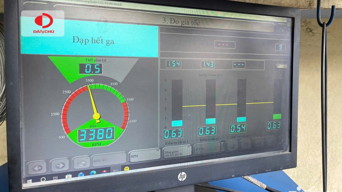 Phần mềm kiểm định sẽ hiển thị một khoảng vòng tua đạt chuẩn trên màn hình. Khi đăng kiểm viên tăng ga và vòng tua máy đạt vào vùng này, hệ thống sẽ ghi nhận kết quả đo. Sau ba lần đo, kết quả khí thải cuối cùng sẽ được tính dựa trên giá trị trung bình của các lần kiểm tra.